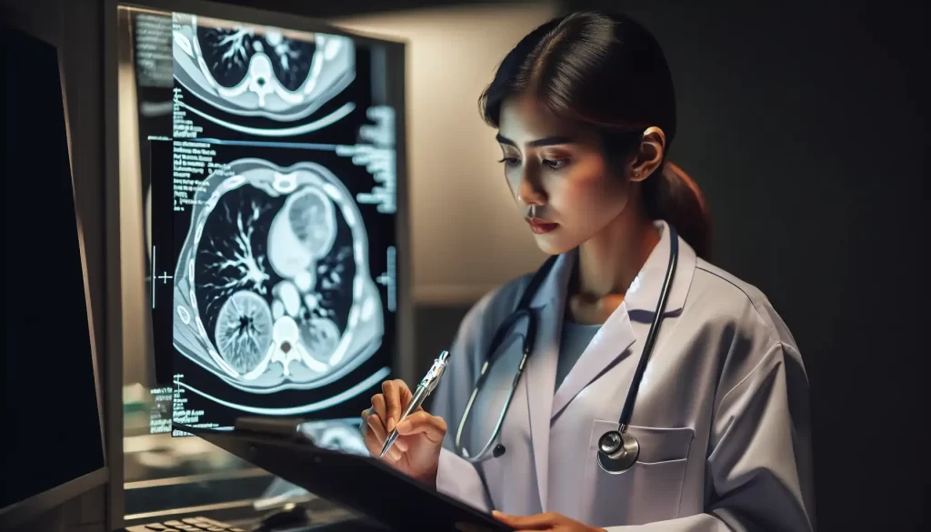 Moreover, CT scans can spot whether the cancer has reached lymph nodes, the opposite lung, or other far-off organs. This level of detail is crucial for putting the disease in its proper stage, which helps doctors suggest the best treatment plans. Additionally, CT scans help check how well treatments are working and catch any cancer coming back early, allowing quick changes in the game plan.