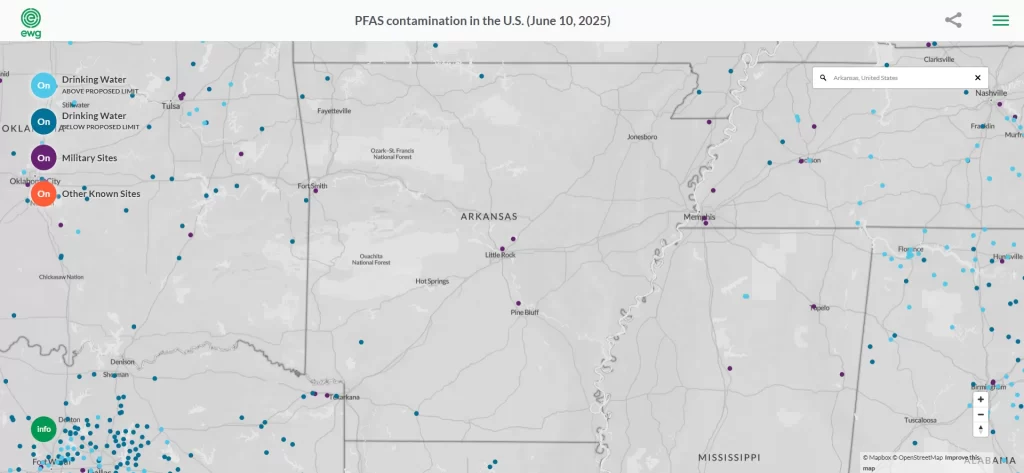 Because PFAS don’t break down easily, even small releases over time can contaminate large areas. Arkansas’s mix of agricultural, military, and industrial sites means PFAS can be found in unexpected places.