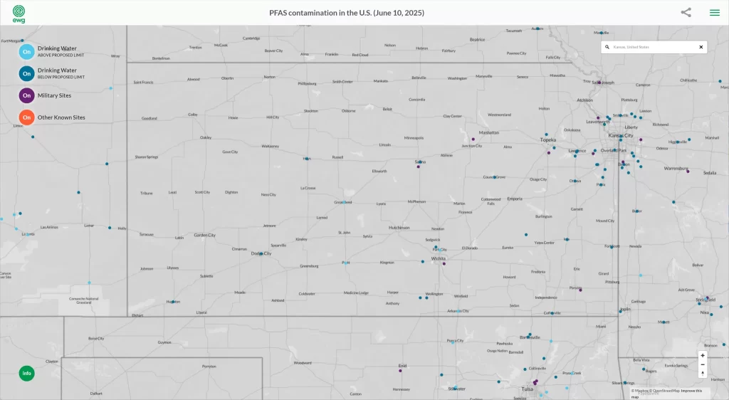 KDHE has begun cataloging potential sources across the state to pinpoint areas where contamination poses an urgent public-health concern. Although investigations are ongoing, major urban centers and rural areas alike have discovered PFAS in soil, groundwater, and drinking water. In fact, new data from the EPA’s Fifth Unregulated Contaminant Monitoring Rule (UCMR 5) process highlight additional localities with detectable PFAS levels, making targeted monitoring a crucial next step for Kansas communities.