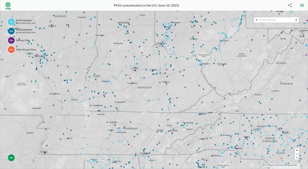 PFAS, sometimes called “forever chemicals,” are extremely persistent in the environment and have been detected in soil, fish, and drinking water across the state. State testing shows detectable PFAS in 44% of Kentucky’s water treatment plants. Although fewer than 10% of these plants appear to exceed the new federal limit, even lower-level contamination can raise health concerns. My aim here is to share, in plain terms, how Kentucky’s water systems are addressing these challenges, where contamination is most serious, and whether you may be eligible for legal recourse if PFAS has impacted you or your property.