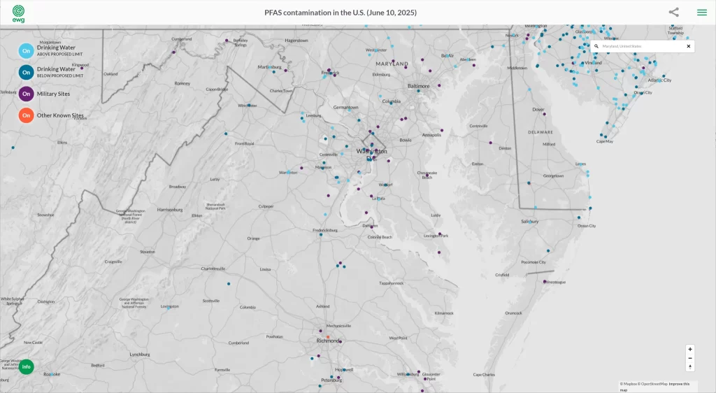 Counties such as Prince George’s, Anne Arundel, and Harford have reported PFAS detections in water sources. In some instances, local water treatment plants have found elevated PFAS levels, prompting advisories and follow-up testing. In rural locations, private wells remain a concern. While the state provides some guidance, private well owners often bear the responsibility for testing and mitigation.