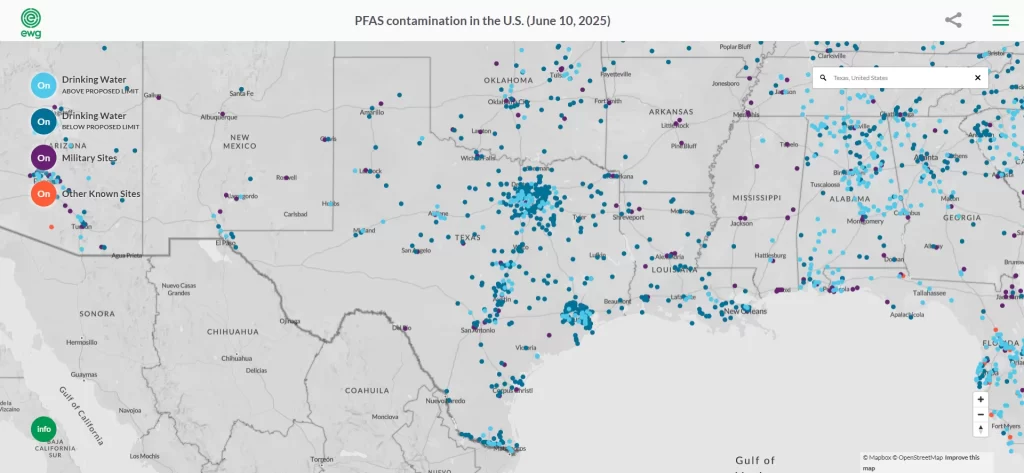 Drinking water remains one of the most critical pathways for PFAS exposure. When PFAS contaminants enter the water supply, they can migrate efficiently and reach large populations. In Texas, tests have shown that some public water systems already exceed new EPA limits for certain PFAS chemicals. These findings have led to growing public pressure for stricter monitoring and prompt remediation.