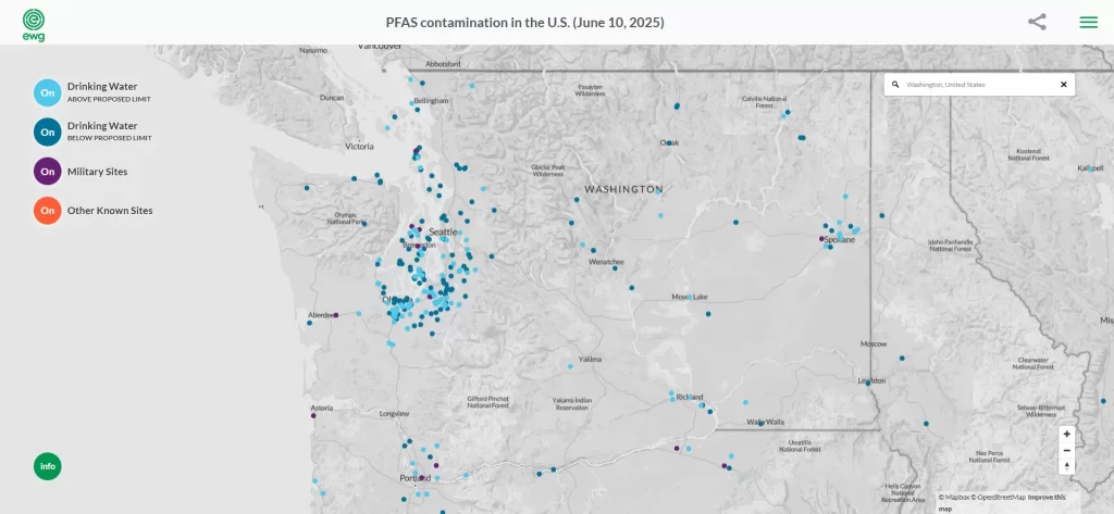 Water contamination is one of the most pressing aspects of PFAS pollution. Because these chemicals do not break down easily, they can remain in reservoirs, rivers, wells, and other water sources. Washington’s drinking water regulations have become more stringent in recent years, reflecting growing concern.