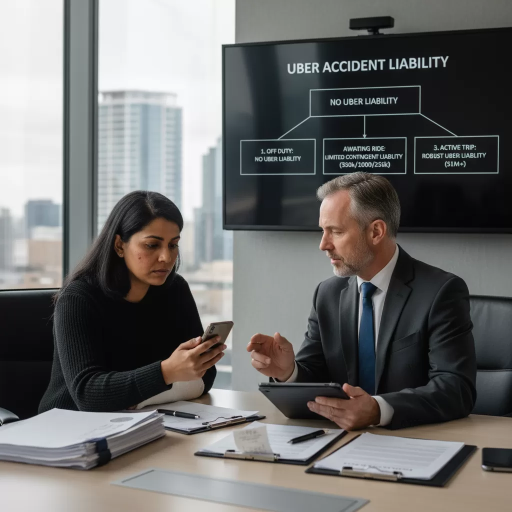 In each of these cases, the question “is Uber liable for accidents?” hinges on the app status, type of negligence involved, and whose actions caused the crash. We have encountered numerous incidents where the driver’s personal insurance denies coverage, thereby forcing victims to seek damage recovery under Uber’s policy. If you are unsure which route to take, our what to do if your uber crashes resource offers practical steps for rideshare accident situations.